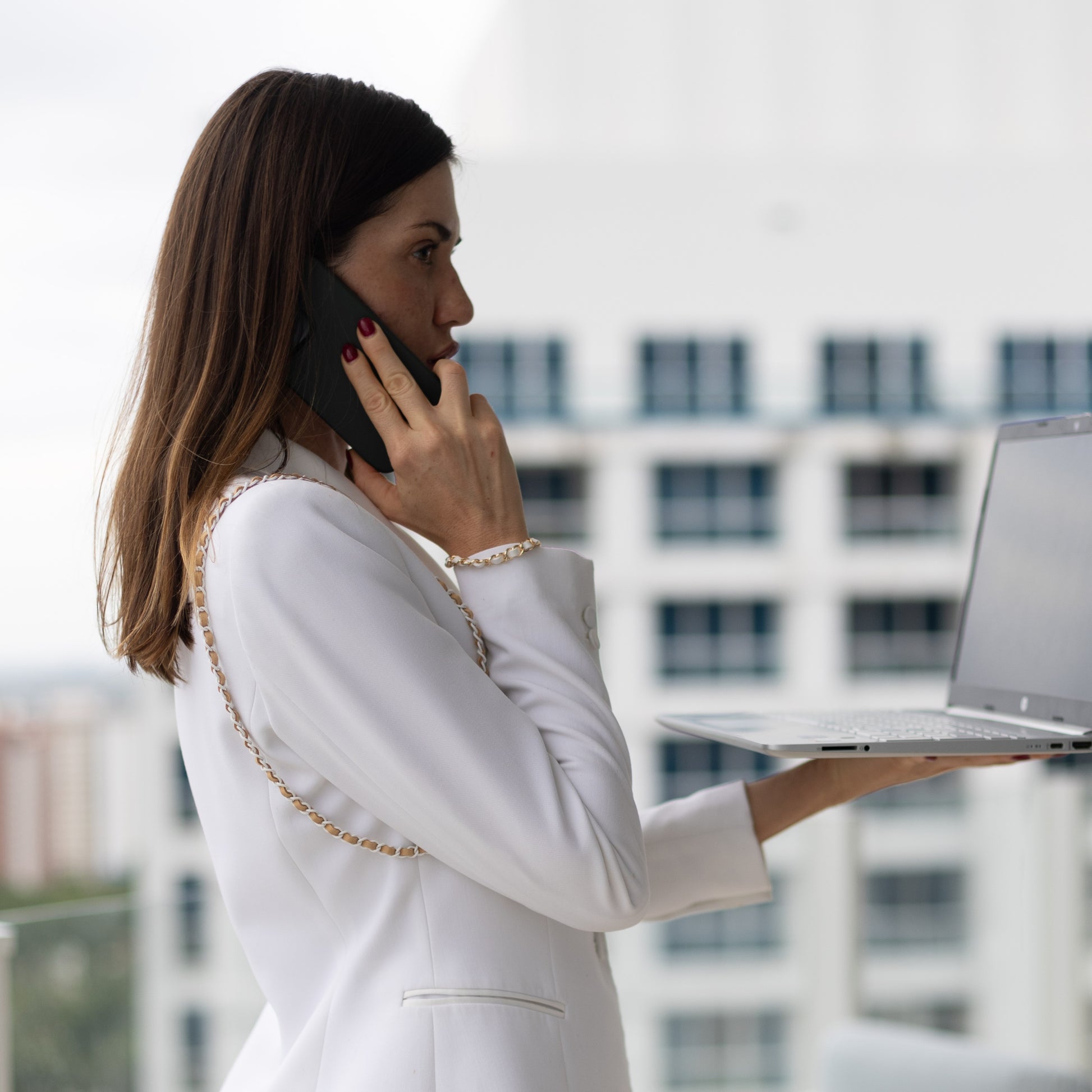 Matte White Crossbody Phone Chain with 100% Beige Suede Woven Throughout. With Phone Chains this chic, there has never been a more convenient, lightweight, and fashionable way to keep your phone with you; hands-free.