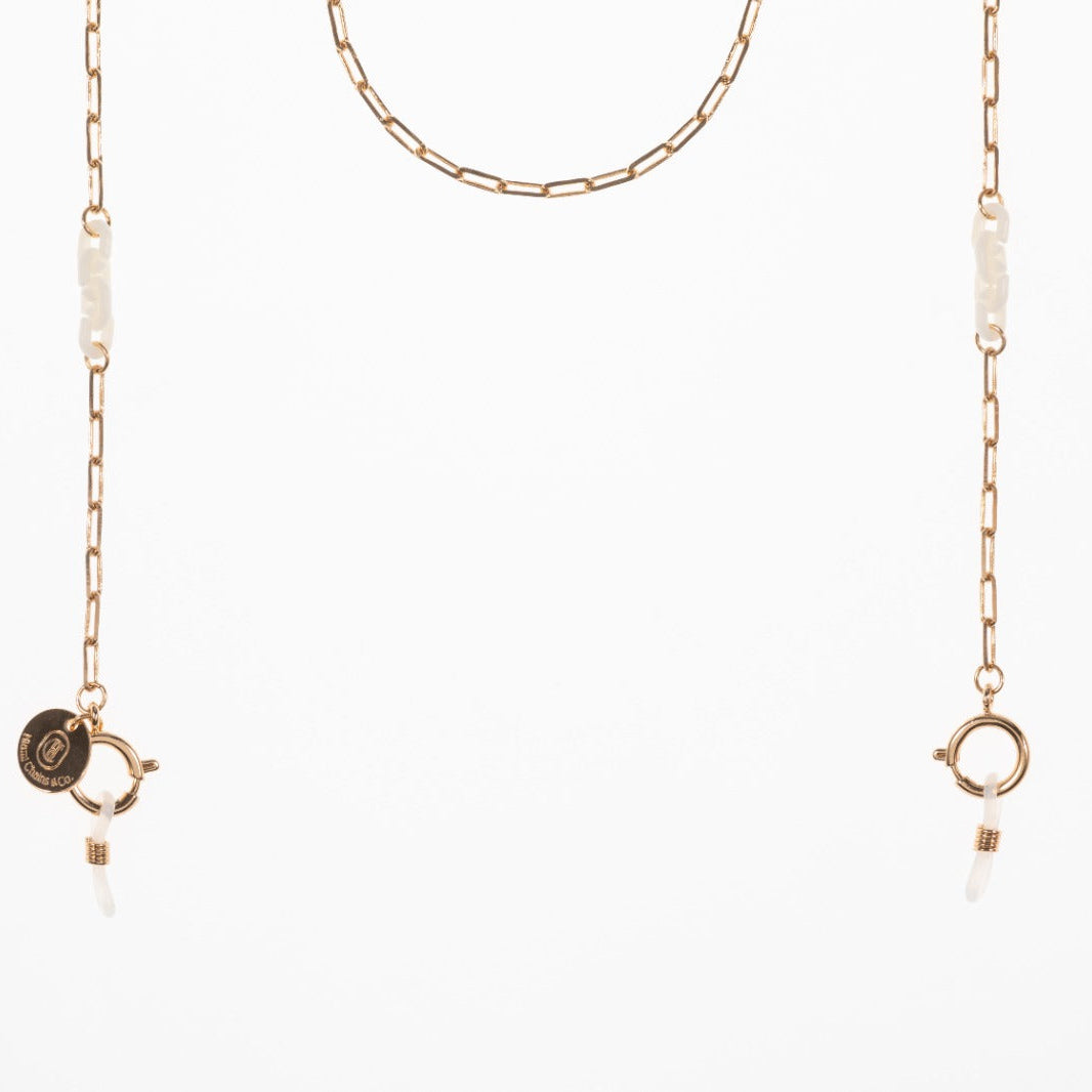 Blending functionality with style, this multifunctional chain also doubles as a necklace when not being used for glasses