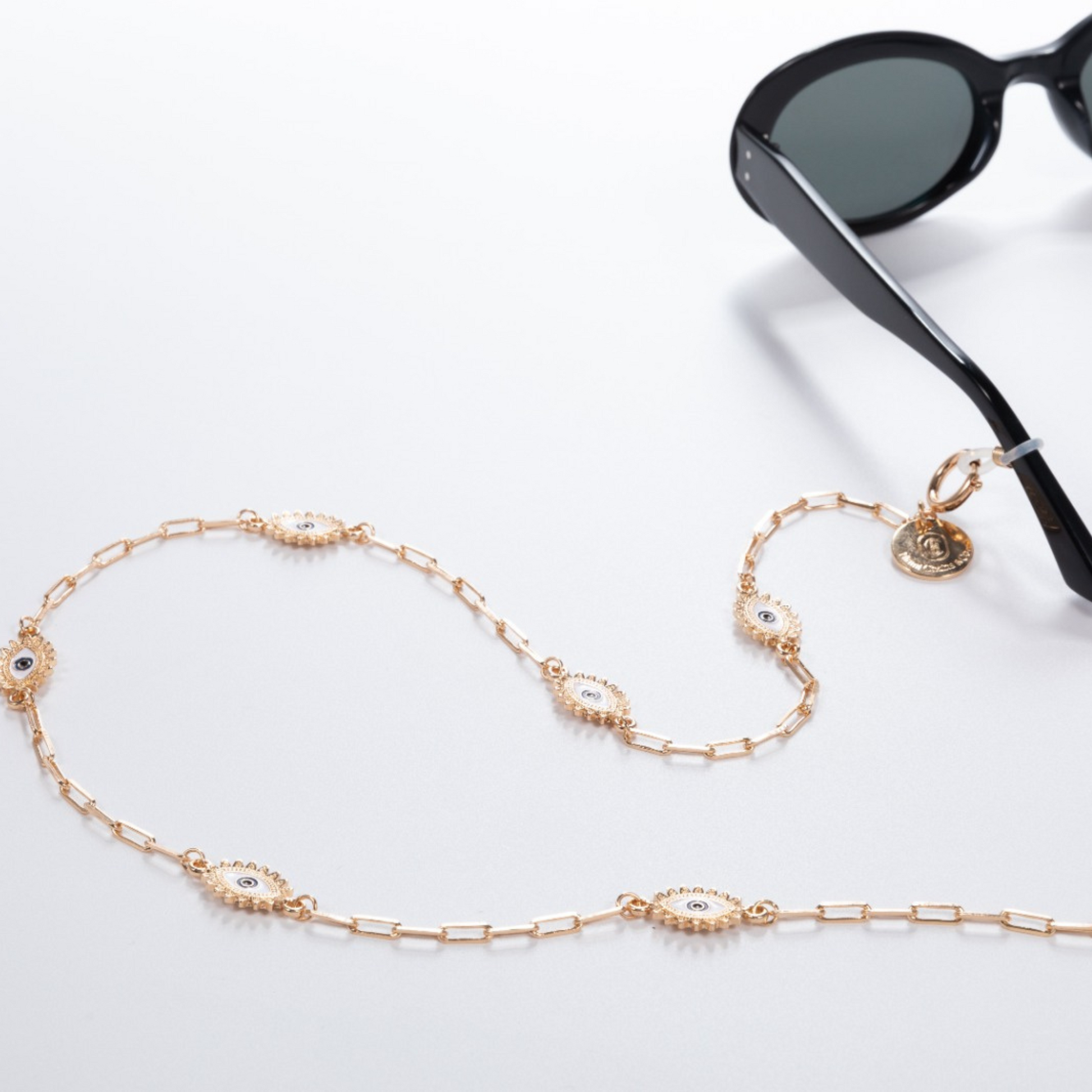 Blending functionality with style, this multifunctional chain also doubles as a necklace when not being used for glasses
