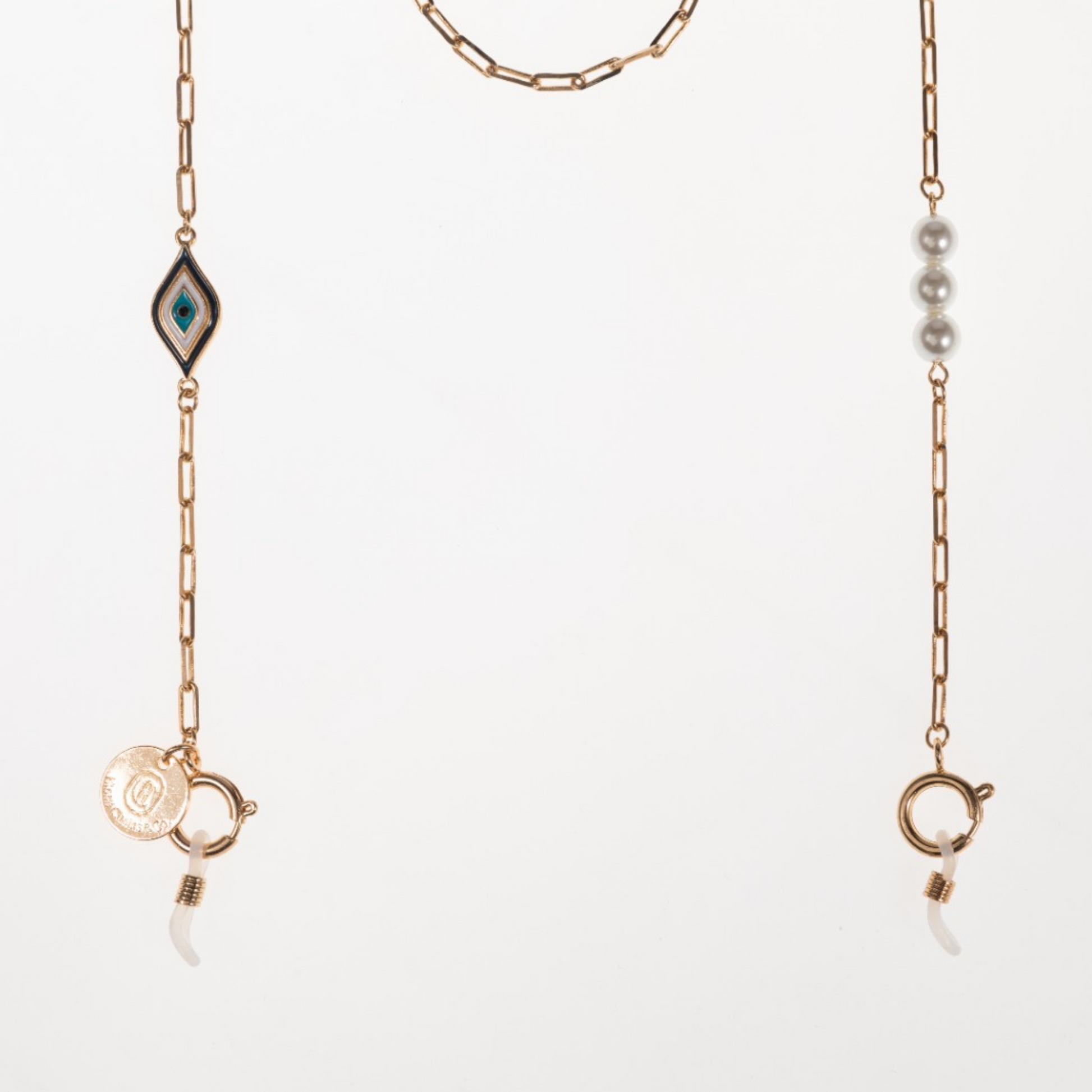 Blending functionality with style, this multifunctional chain also doubles as a necklace when not being used for glasses