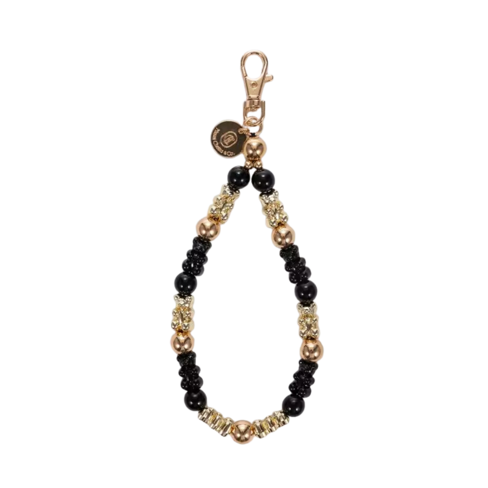 Phone Charm featuring a combination of black and 18K gold plated Gummy Bears & Beads.