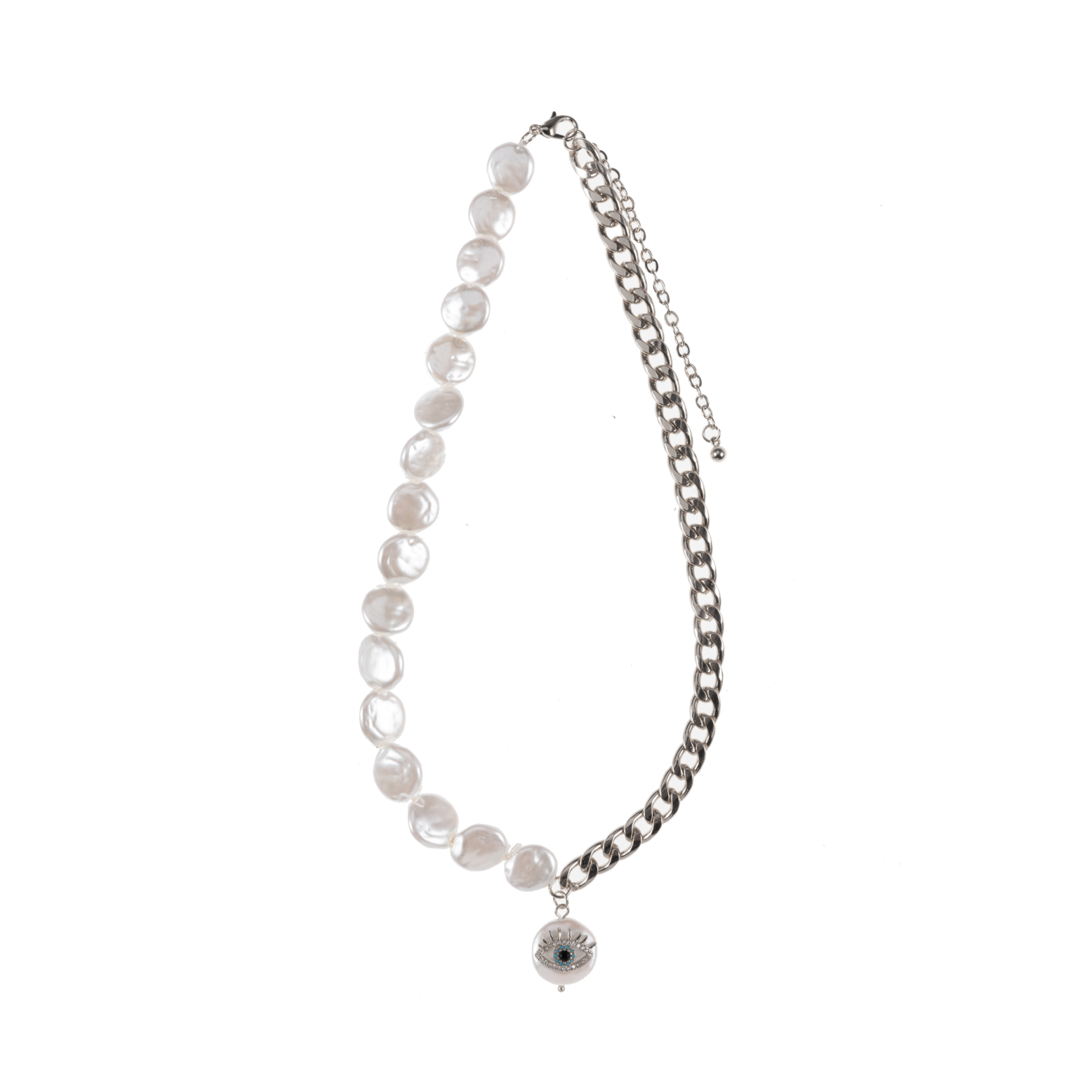 Half Silver Plated Cuban Link + Half Pearl Necklace
